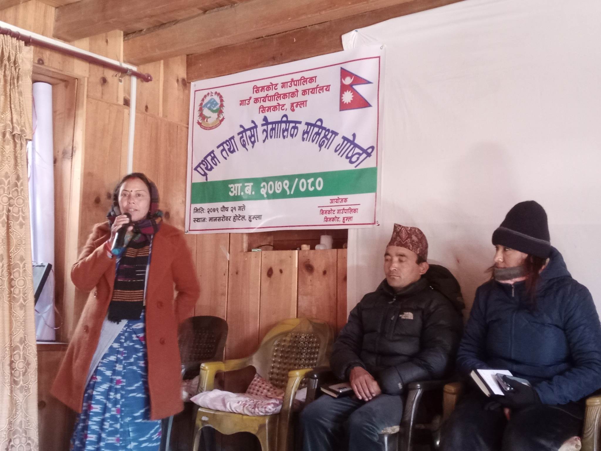 आर्थिक वर्ष ७९।८० को प्रथम तथा दोश्रो त्रैमासिक समिक्षा गोष्ठी संचालन भएको छ । गोष्ठी हुम्ला जिल्ला सिमकोट गाउँपालिकाले संचालन गरेको हो । सिमकोट गाउँपालिकाले गत आर्थिक वर्ष र चालु आर्थि वर्षमा सिमकोट गाउँपालिका वडा नं १ देखि ८ सम्म ...