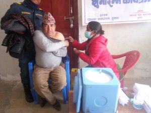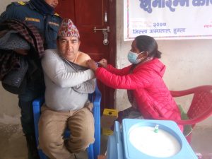 हुम्ला जिल्लाका जिल्ला न्यायाधीश जगतबहादुर पौडेलले कोरोना विरुद्धको खोप लगाउनु भएको छ । विश्वमा महामारीका रुपमा फैलीएको कोराना भाइरस कोभिण्ड १९ का विरुद्धको खोप माननीय न्यायाधीश पौडेलले आज लगाउनु भएको हो ।