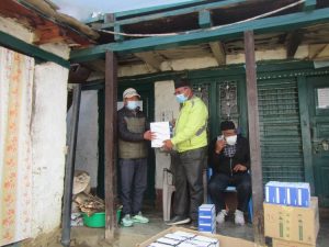 आधार विकासको कार्यालयमा आयोजित १ कार्यक्रममा आधार विकासका शिक्षा अधिकृत कन्जोक लामाले खार्पुनाथ गाउँ पालिका अध्यक्ष कर्णबहादुर रावललाई हस्तान्तरण गरेका हुन । त्यसै गरी जिल्ला स्वास्थ्य कार्यालयलाई ५ सय एन्टिजिन किट सिमकोट गाउँ पालिकालाई २ सय र नाम्खा गाउँ पालिकालाई २ सय र खार्पुनाथ गाउँ पालिकालाई १ सय थान गरी जम्मा १ हजार थान एन्टिजिन किटहरु वितरण गरेको हो ।