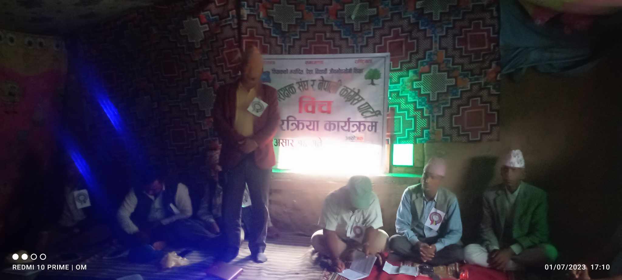 पाँच वर्षमा महाधिवेशन एक पटक हुने हुदा लोगतान्त्रीक पद्धति बाट चयन भएको नेतृत्वले बाँकी चार वर्षको समय धार उपधार रहित बनाएर काङ्ग्रेसको राजनितीबाट जनमुखि बनोस् भन्ने आसयले तिक्तता मेटाउन नेपाल शिक्षक संगठनको आयोजना रहेको बुझियको छ । कार्यक्रममा धार उपधार मेटाउन,विधालय मर्चको सृजना गर्न तथा दरबन्दी मिलान सम्बन्धि अन्तरक्रिया कार्यक्रम भएको नेपाल शिक्षक महासंघ अध्यक्ष दिवारकर छत्यालले बताएका छन ।