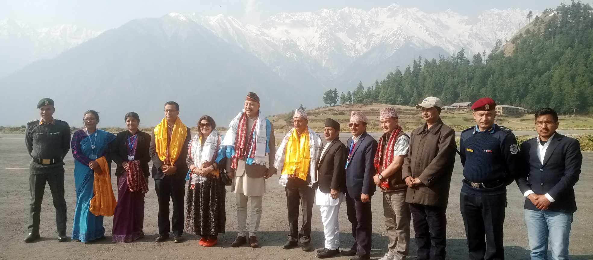 प्रधान न्यायाधीश श्रेष्ठलाई माननीय जिल्ला न्यायाधीश शम्भु प्रासद बराल, श्रेस्तेदार ज्ञानबहादुर खत्री, प्रमुख जिल्ला अधिकारी विनोद कुमार पोखरेल, प्रहरी नायव उपरिक्षक रविन्द्र खनाल, ससत्र प्रहरी नायव उपरिक्षक गुन्जन प्रताव मल्लले सिमकोट विमान स्थलमा स्वागत गरेका थिए ।