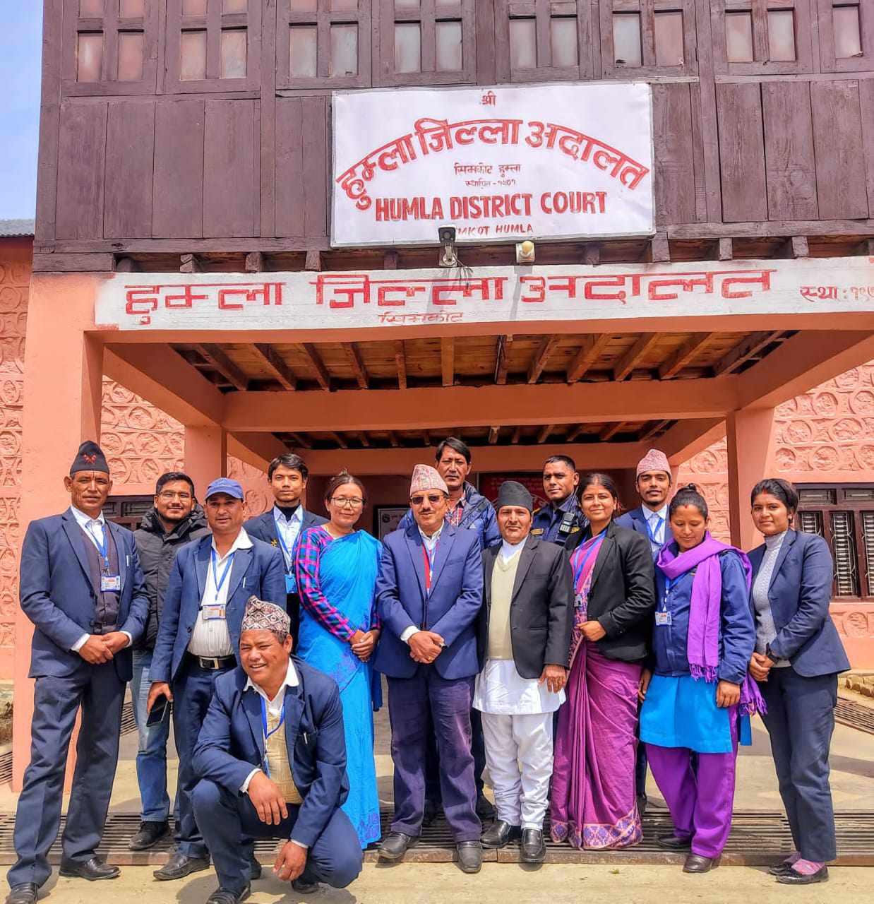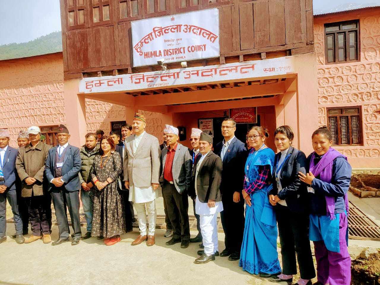 प्रधान न्यायाधीश विश्वम्भर प्रसाद श्रेष्ठ नेतृत्वको टोलीले हुम्ला जिल्ला अदालतको निरिक्षण गर्नु भएको छ । भौगोलिक विकटता भएका कारण वढी भन्दा वढी प्रविधिको प्रयोग गरी अदालती काम कार्यहरु छिटो छरितो गर्न र सेवाग्राहीलाई मुस्कान सहितको सेवा प्रवाह गर्न प्रधान न्यायाधीश श्रेष्ठले निर्देशन दिनु भएको हो । नेपाली सेनाको हेलिकप्टरमा विहान साढे नौ वजे हुम्ला आइ पुग्नु भएका प्रधान न्यायाधीश सँग सर्वोच्च अदालतका मुख्य रजिष्टार देवेन्द्र राज ढकाल र सह रजिष्टार अर्जुन प्रसाद कोइराला लगाएतको सहभागीता रहेको थियो ।