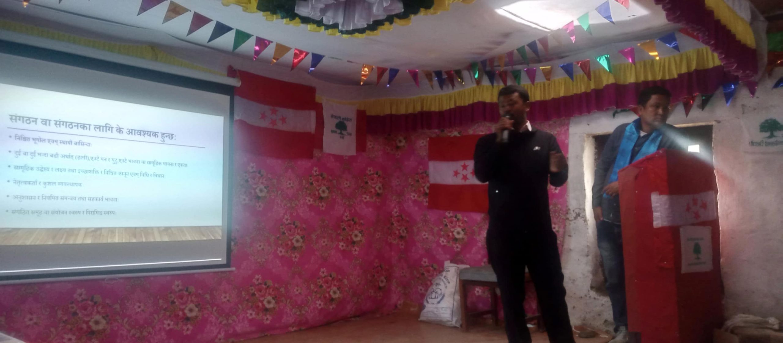 नेपाली काँग्रेस केन्द्र देखि वडा इकाइ सम्मका पदाधिकारीको उपस्थित रहेको कार्यक्रमलाई नेपाली काँग्रेसका जिल्ला सभापती मोहन विक्रम सिंह,उपसभापति बसन्त रोकाया र महासमिति सदस्य राजबहादुर रोकायाले प्रशिक्षण गराएका थिए ।