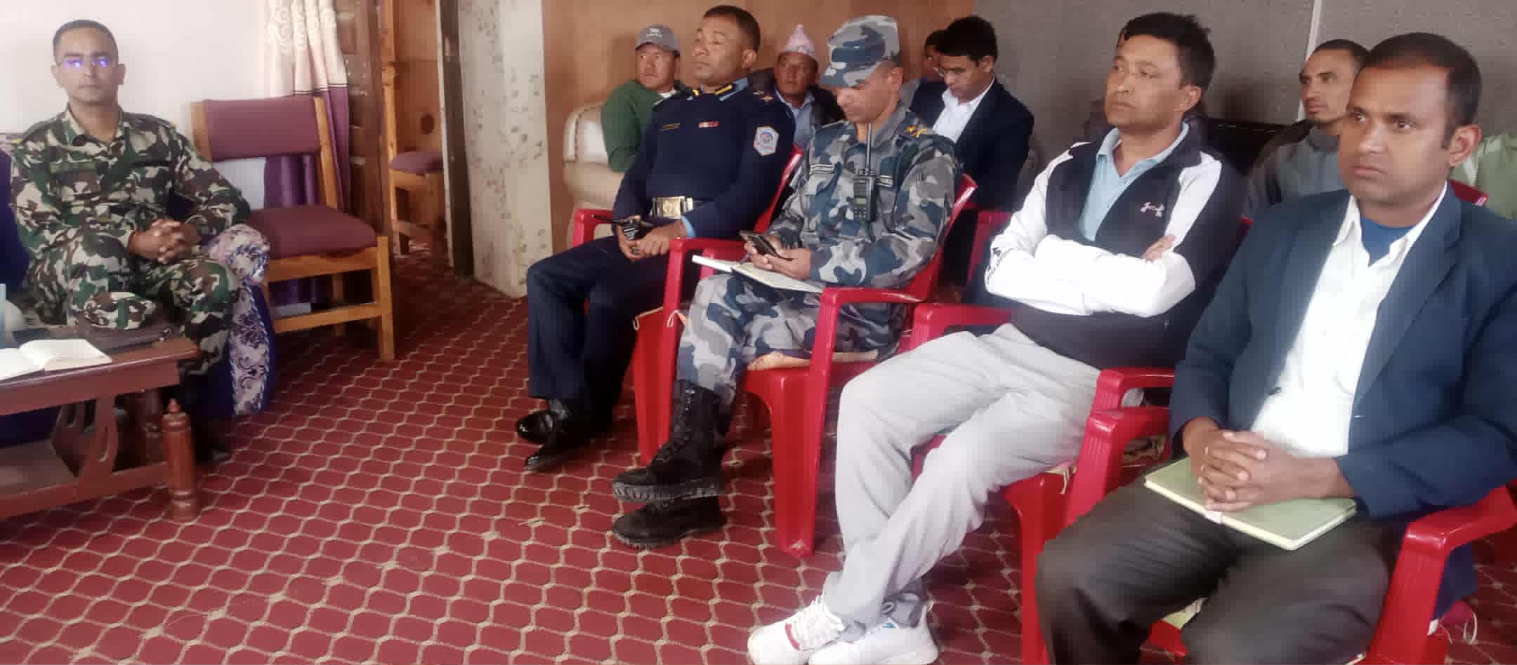 सोमबार दिनको ११ वजे जिल्ला प्रशासन कार्यालयमा वसेको बैठकमा राजनितिक दल नागरीक समाज सुरक्षा निकाय सरकारी तथा गैर सरकारी कार्यालयका प्रमुख एव प्रतिनिधि पत्रकार लगायतको उपस्थित रहेको थियो ।