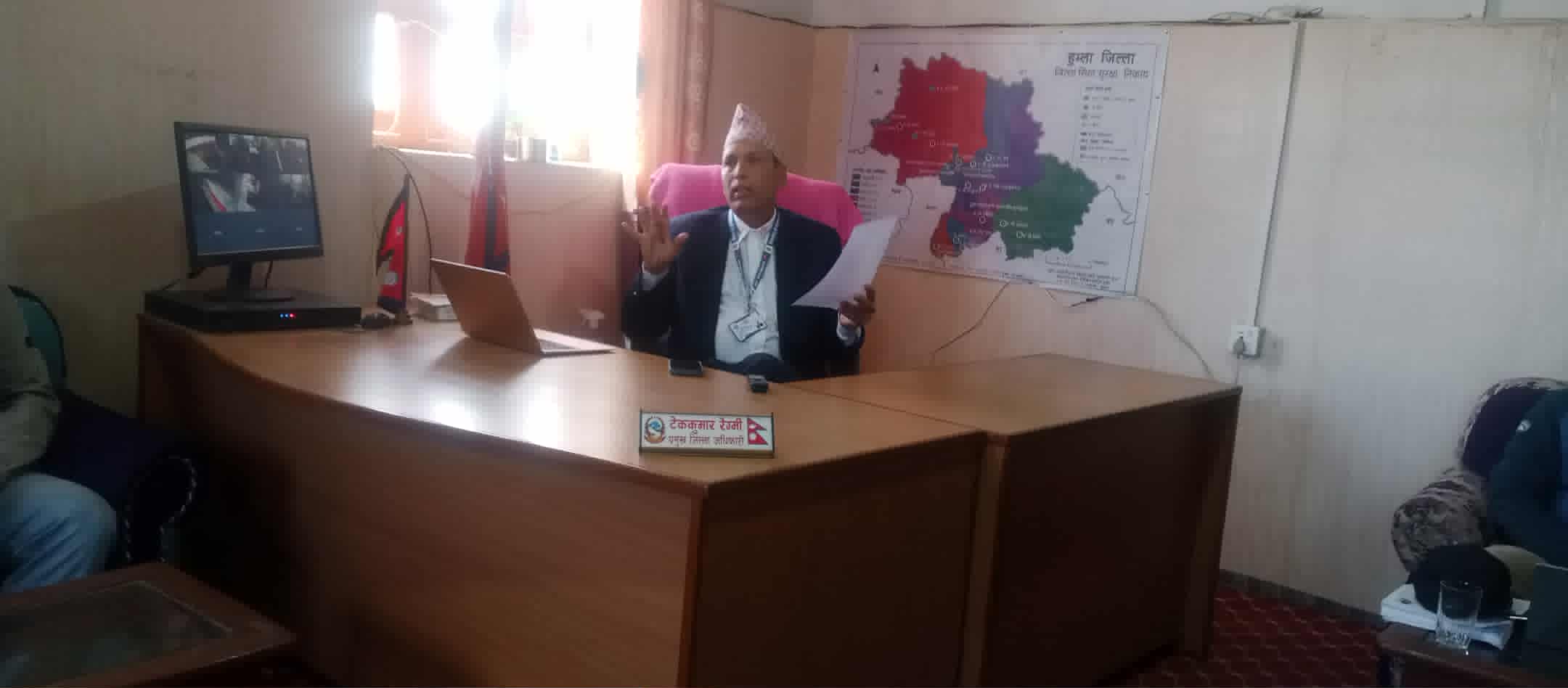 हिमाली जिल्ला हुम्लामा विपद व्यवस्थापन समितिको बैठक वसेको छ । हिमपात तथा अविरल वर्षाले स्थानियवासीको जनधनमा पार्न सक्ने क्षेतीलाई आकलन गर्दै उक्त बैठक बसेको हो । प्रमुख जिल्ला अधिकारी टेक कुमार रेग्मीको अध्यक्षतामा जिल्ला प्रशासन कार्यालय हुम्लामा वसेको बैठकले जिल्लाका सात वटै गाउँपालिकामा भएका सडकको अवस्था, सुख्खा पहिरोले पुर्याएको क्षेती, यस अघि भएको आगलागीका पीडितहरुको अवस्था, हिमताल फुटेपछि गएको पहिरोले पुर्याएको क्षेती सँगै राहत उद्धार र स्थानियवासीको अवस्थाका बारेमा उक्त बैठकमा छलफल गरिएको थियो । केही गरि प्राकृतिक प्रकोप भइ हालेमा पुर्व तयारीका अवस्थाकाबारेमा सत्रुभन्जन गुल्मका गुल्मपति, ससस्त्र प्रहरी नायव उपरिक्षक, जनपत प्रहरी प्रमुखले आफुहरु तयारी अवस्थामा रहेको बताएका थिए ।