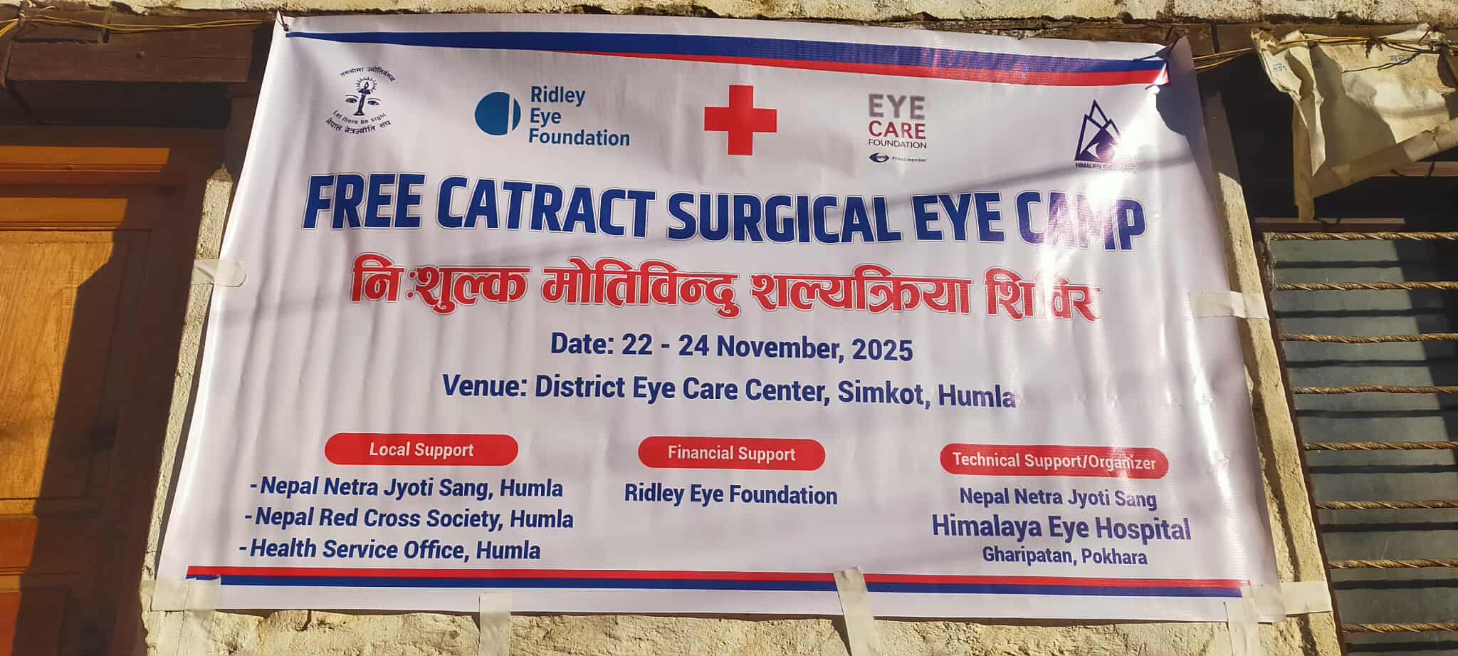शिविरलाई स्थानिय तहमा नेपाल नेत्रज्योती संघ,नेपाल रेक्रस सोसाइटी र स्वास्थ्य सेवा कार्यालय हुम्लाको सहयोग रहेको छ भने आर्थिक सहयोग रिडलि आइज फउन्डेसनको आर्थिक सहयोग सँगै प्राविधिक सहयोग नेपाल नेत्रज्योती संघ र हिमालय आँखा अस्पताल घारी पाटन पोखराको रहेको छ । शिविरको पहिलो दिन आज २ सय ८४ जनाको आँखा चेक जाँच गरिएको छ । जस मध्य १५ जनाको आज शनिवार सल्यक्रिया गरिएको र सल्यक्रिया गर्नु पर्ने १६ जनाको भोली आइतबार गरिने मन्त्री बोहराले बताएका छन् । शिविर सँचालनका क्रममा औषधी निशुल्क दिने गरिएको छ भने खाना बस्न सेवाग्राही आफैले व्यवस्था गरेका छन् ।